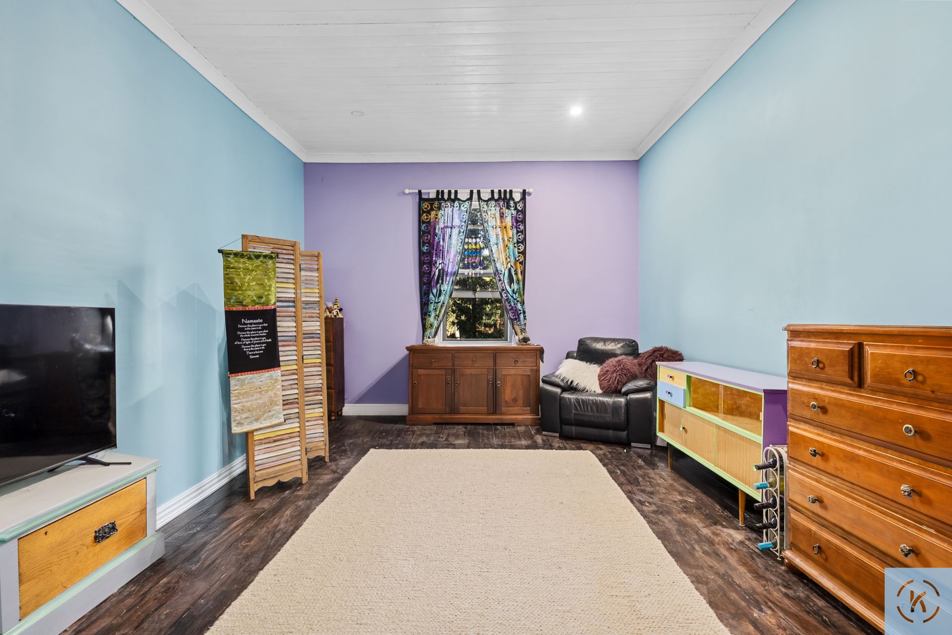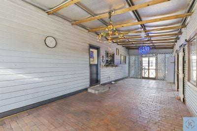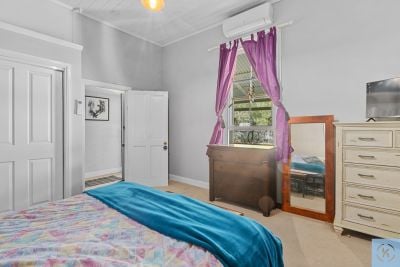Inviting Entry: Step onto the charming timber verandah and into a carpeted hallway leading to two spacious queen-sized bedrooms-both carpeted, with one featuring a wardrobe and split-system air conditioning.
