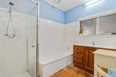 Updated Wet Areas: A functional layout includes a separate laundry, toilet, and bathroom featuring a bath, shower, and vanity.