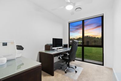 Inside, refined interiors feature polished concrete floors, stone benchtops, and premium finishes throughout. The spacious open-plan living, dining, and kitchen area flows effortlessly to the outdoor entertaining spaces the perfect spot to relax or entertain while enjoying the tranquil lagoon outlook.