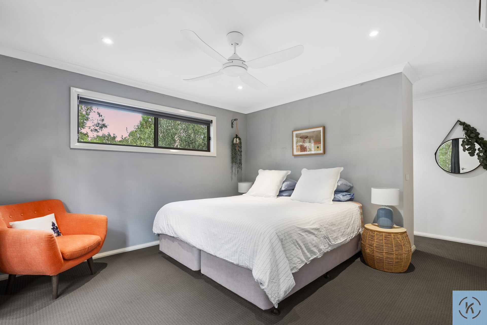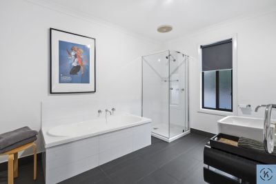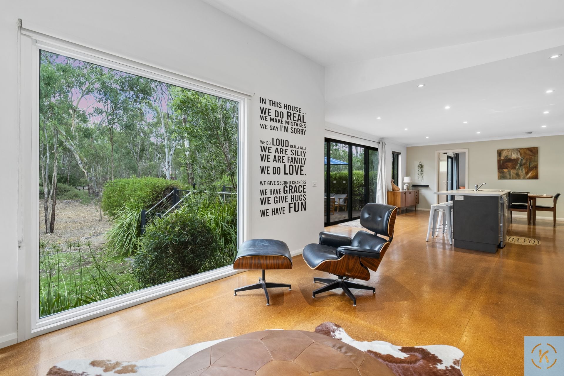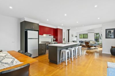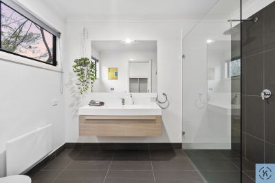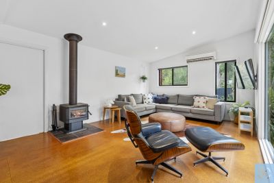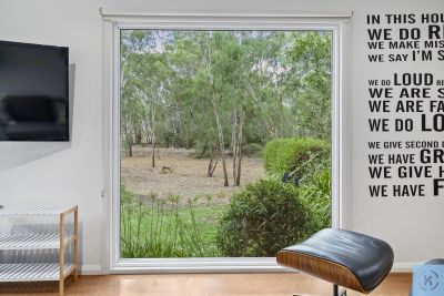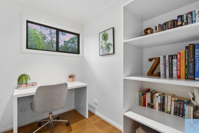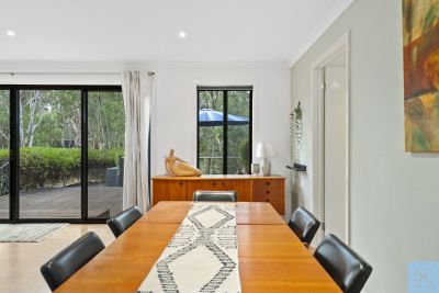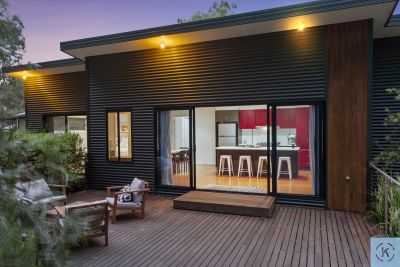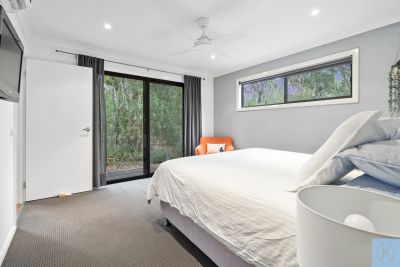 The spacious master suite is privately positioned and features a walk-in robe and sleek ensuite, while two additional bedrooms are generously sized and serviced by a contemporary main bathroom. A dedicated study enjoys tranquil outlooks over the native surrounds, providing an inspiring work-from-home space.